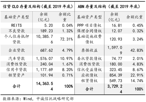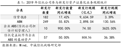 ÐÅÍй«Ë¾¼ÓÈëµÄ´æÁ¿×ʲú֤ȯ»¯ÓªÒµ·½Ã棬×èÖ¹2019Äêµ×£¬ÐÅ´ûCLO´æÁ¿¹æÄ£µÖ´ï1.44ÍòÒÚ£¬Í¬±ÈÔöÌí31%£»ABN´æÁ¿¹æÄ£µÖ´ï3729.24ÒÚÔª£¬Í¬±ÈÔöÌí120%£»ÒÔÐÅÍÐÊÜÒæÈ¨×÷Ϊ»ù´¡×ʲúµÄÆóÒµABS´æÁ¿¹æÄ£µÖ´ï1647.17ÒÚÔª£¬Í¬±ÈÔöÌí18.99%¡£