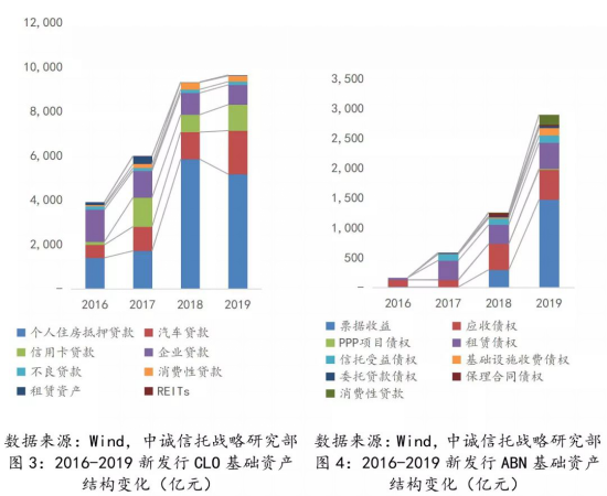 ¶þÊǵײã×ʲúÊèÉ¢»ò×ÊÖʽϺõĻù´¡×ʲú¹æÄ£ºÍÕ¼±ÈÍ»³ö¡£ÐÅÍй«Ë¾¼ÓÈëµÄп¯ÐÐ×ʲú֤ȯ»¯ÓªÒµÖУ¬µ×²ã×ʲúÊèÉ¢»ò×ÊÖʽϺõĻù´¡×ʲúÀàÓªÒµÔöËÙ¸ü¿ì¡¢Õ¼±È¸ü¸ß¡£´Ó2016-2019Äêп¯ÐÐÐÅ´ûCLO»ù´¡×ʲúÀ´¿´£¬·¿´û¡¢³µ´û¡¢ÐÅÓÿ¨´û¡¢ÏûºÄ´û¿îÀàÕûÌå·ºÆðÏÔÖøµÄ¸ßËÙÔöÌíÌ¬ÊÆ£¬¶øÆóÒµ´û¿îÀàÔò½µ·ù½Ï´ó¡£´ÓͬÆÚп¯ÐÐABN»ù´¡×ʲúÀ´¿´£¬Æ±¾ÝÊÕÒæÀà»ù´¡×ʲúÔöËÙ¿ìÇÒ¹æÄ£×î´ó£¬ÔÚ2019Äêп¯ÐÐABN¹æÄ£ÖеÄÕ¼±ÈÒѾµÖ´ïÁË51%£¬ÕâÓëÆ±¾ÝÊг¡×Ô¼ºÌåÁ¿½Ï´ó¡¢ÔÊ¼È¨ÒæÈË×ÊÖʽϸßÓйء£